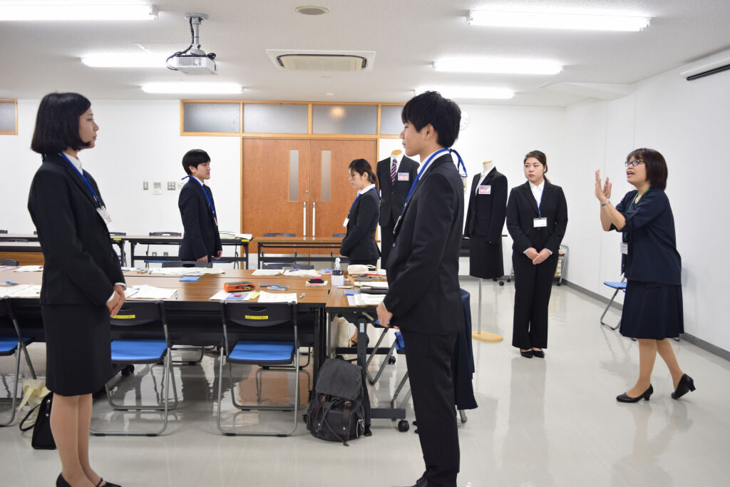 身だしなみや敬語の使い方、名刺交換の方法などについて実践的に学び、社会人として必要なマナーを身につけます。