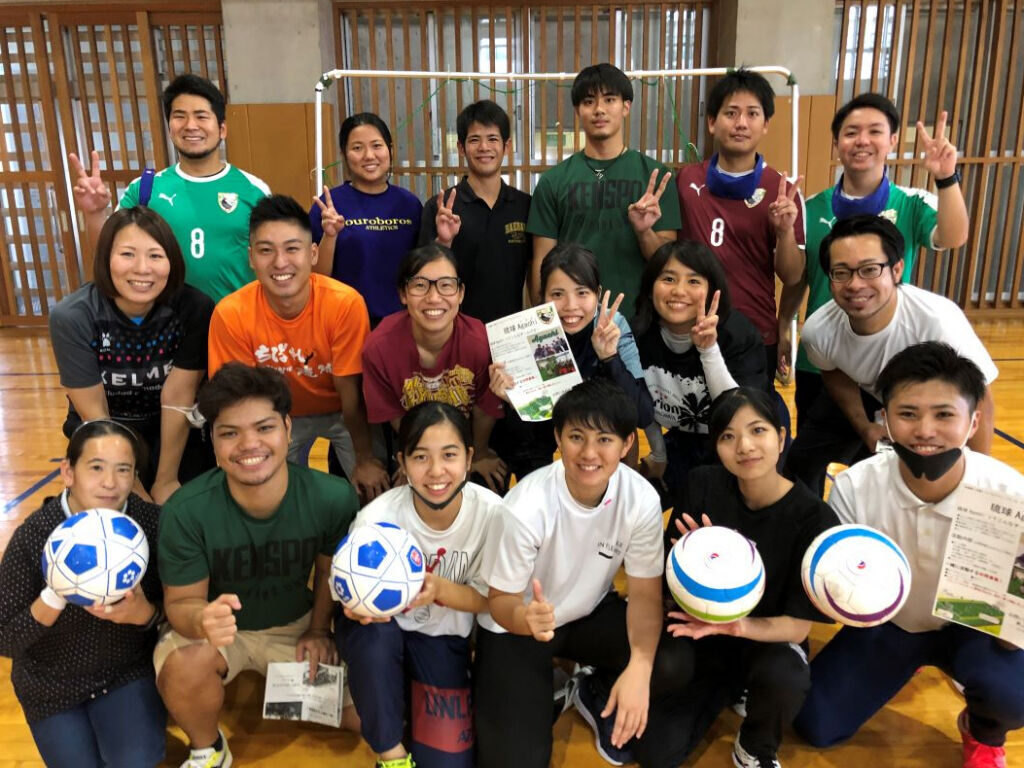 沖縄の障がい者アスリートを応援する「アスリート工房チャレンジプロジェクト」の事業により、毎月様々なスポーツ団体を沖縄大学にお招きし、体験・交流の場を作る「チャレンジスポーツ教室」。中級障がい者スポーツ指導員の資格を目指す学生たちの貴重な経験の場となっています。11月14日(土)に行われた第二回教室では、沖縄で唯一のブラインドサッカーチーム「琉球agachi」の選手・スタッフ5名と学生12名でブラインドサッカー交流会を行いました。
