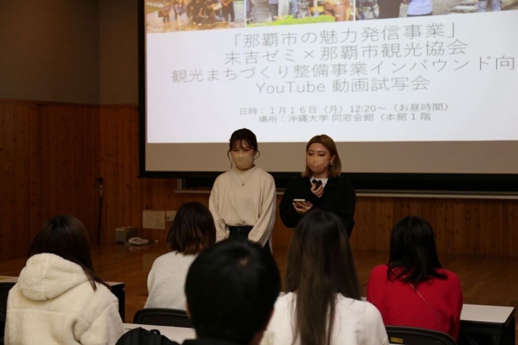 1月16日、国際コミュニケーション学科末吉綾乃先生のゼミ生が完成させた那覇市観光PR動画の試写会が同窓会館で開催されました。
