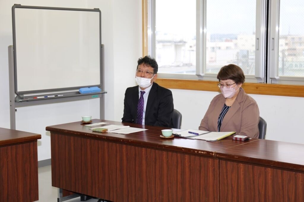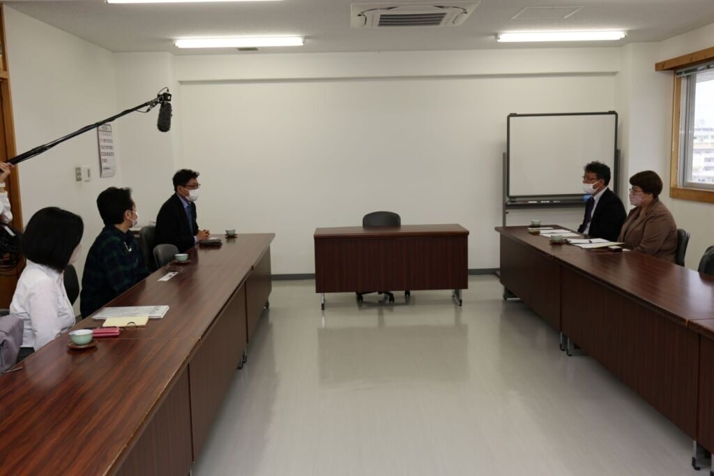 また、試写会の前には、本学山代寛学長と、那覇市観光協会の名嘉元裕事務局長の意見交換会も開催され、学生と同世代の観光客に那覇市の魅力をよりアピールできる動画が完成したことを喜ぶとともに、今後も学生の若いパワーを事業で活かせていかせたらと期待が寄せられました。
