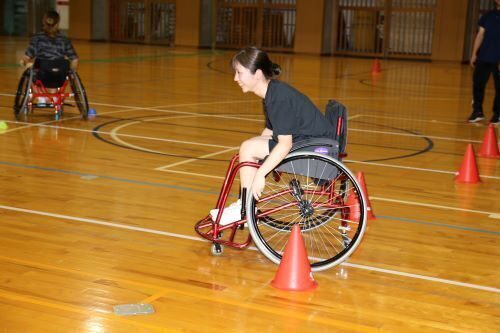本学ではパラスポーツ指導員(旧:障がい者スポーツ指導員)の資格取得に向けたプログラムを設置していて、定期的に学内で障がい者スポーツ教室を開催しています。