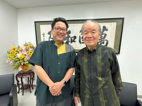 本学は創立60周年に沖縄大学憲章の実現を目指した長期ビジョン「Okidai Vision 2028」を掲げ、10年後の将来像を見据えた第5次中期計画を同時に策定、自己点検・評価活動に基づく教育の質保証を行ってきました。長期ビジョン策定に関わり、沖縄大学の飛躍に期待を寄せ続けてくださる第22代・23代学長仲地博先生をお招きして、山代寛学長と創立記念日を迎えたこの日に更なる沖縄大学の発展について展望しました。