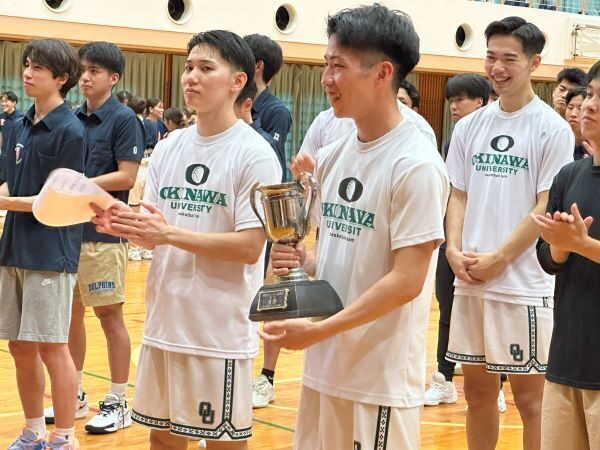 第32回県大学バスケットボール選手権大会が沖縄国際大学体育館で開催(6月15~22日)され、3勝1敗で本学男子バスケットボール部は見事、優勝を決めました。男子バスケットボール部は3大会連続の優勝となります。