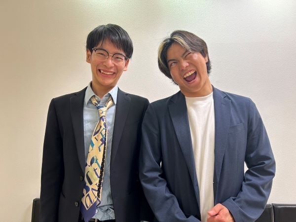 よしもとアカデミーではお笑いのプロの先輩方の講義を受けることができて、とても学びは大きいです。500人弱の同期がいて、なかには60歳を過ぎた方もいます。いろいろな人と話しますが「若いうちになんでも挑戦してみるのが大事」とアドバイスを受けます。若いうちになんでもやってみようと勇気ももらえています。お笑い芸人としての手応えはまだまだですが、兵庫県出身の相方とコンビを組み、日々頑張っています。コンビ名は「本音でしゃべる。」です。