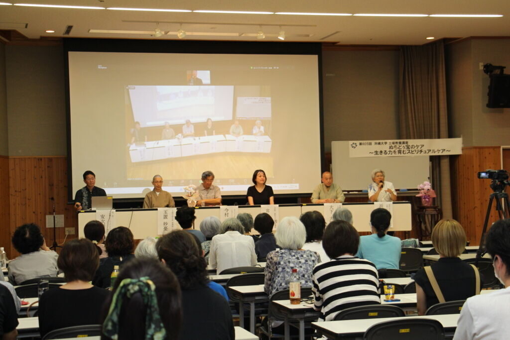 第605回沖縄大学土曜教養講座「ぬちどぅ宝のケア~生きる力を育むスピリチュアルケア~」がハイブリット(対面及びZoomウェビナー)にて開催されました。