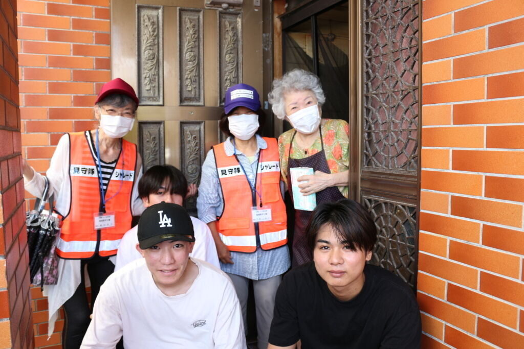 笑顔で地域を見守る活動に参加し、学生たちも大いに刺激を受けた様子でした。