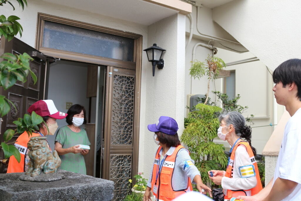 参加した学生は3グループに分かれて地域見守り隊に同行し、約30世帯を訪問しました。