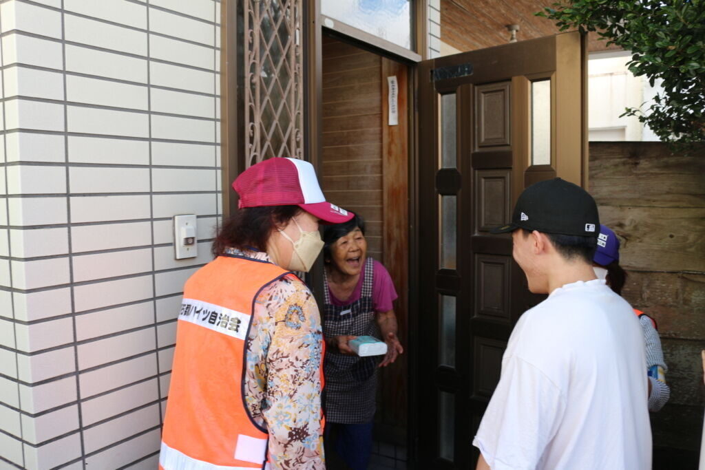 今回、学生たちはティッシュをお渡しする役目でしたが、訪問先では「孫が沖大生で野球をしている」という方や「私も沖大出身」という方もいて、いつもよりも会話も盛り上がったようです。「また来てね!」と沖大生の訪問を笑顔で喜んでくださいました。