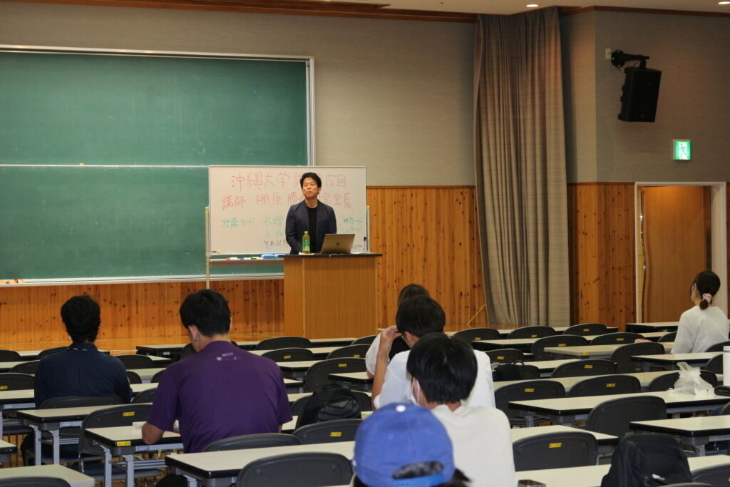 沖縄大学論は沖大出身の社会人(企業、NPO、大学教職員等)や多様な学びの意義付けを行える実務家など、毎回ゲスト講師を招聘して開講しています。地域で活躍するゲスト講師の講義から、学生のキャリア形成のための基礎固めを行うとともに、キャリア形成に向けて多様な視点を獲得できるようになることを目指しています。
