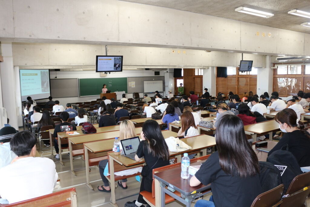 講義の最後には、「ネットでわかることなんてほんの一部。取材するために地元沖縄の事を勉強する毎日。歴史を掘り起こし、残す一人という責任感を持って頑張っていきたい。浦添や那覇で幼少期から大学まで過ごしてきたが、沖縄はとても広い。皆さんには足元に目を向けつつ、沖縄の各地域に違いがあることに気付いてほしい。メディアの仕事では沖縄のことを勉強できる。沖縄のメディアにも興味を持ってほしい!」とのメッセージが送られました。