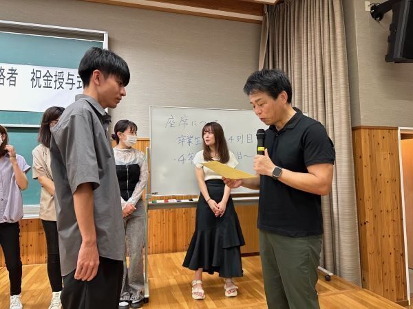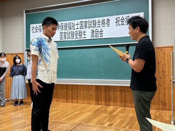 8月10日、福祉文化学科では、2024年度国家試験合格者への祝金授与式・国家試験受験生激励会を開催しました。