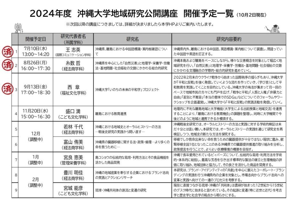 【沖縄大学地域研究公開講座について】
