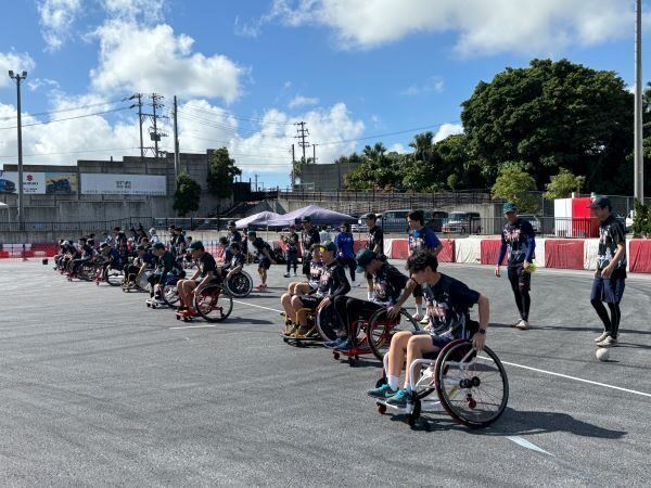 10月19日(土)に沖縄市モータースポーツマルチフィードにて「中外製薬presents 車いすソフトボール体験会in沖縄」(主催:日本車椅子ソフトボール協会)が開催され、本学の軟式野球部や健康スポーツ福祉専攻の学生が参加しました。車椅子ソフトボールは、チーム内で役割分担を行うことで、障がいの有無に関わらず協力してゲームを楽しむことができることが特徴のスポーツです。体験会では日本代表選手指導の下、車椅子操作や練習体験、ミニゲームなどが行われました。