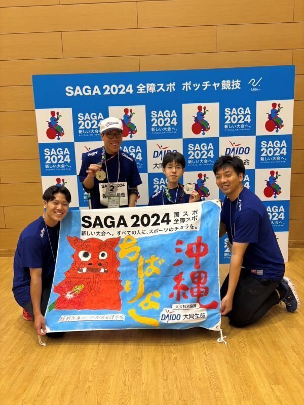 夢に向かってがんばっている学生を紹介する『ピカリと輝く沖大生!』企画。先月、佐賀で開催された第23回全国障害者スポーツ大会「SAGA2024」ボッチャ競技で銀メダルを獲得した福祉文化学科2年次の兼村星哉さんを紹介します。兼村さんは生まれつき左の手と足にマヒがありますが、障がいを受け止め、果敢に夢を広げています。