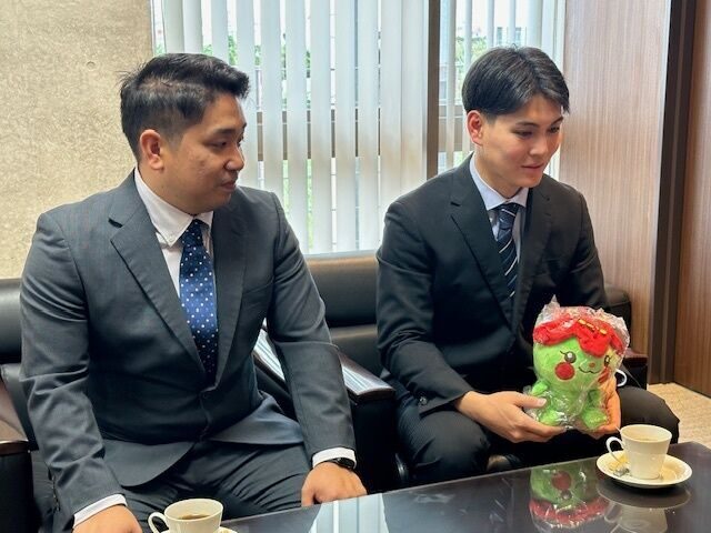日本代表 國吉翔太選手、西原町長表敬訪問