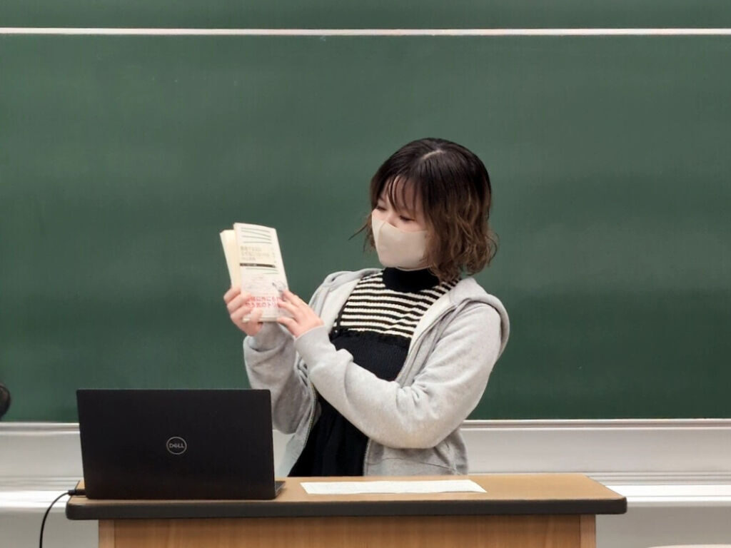 緊張感漂う会場では、発表者たちが発表直前に大きく深呼吸をする姿が見られ、緊張を乗り越える姿が印象的でした。発表が始まると、どの学生も堂々とした態度で、自分が選んだ本の魅力を存分に伝え、観客を惹きつけました。発表後には、会場の学生たちから次々と質問が寄せられ、意見交換も活発に行われ、その場は、単なる本の紹介にとどまらず、互いに影響を与え合う知的な交流の場となりました。