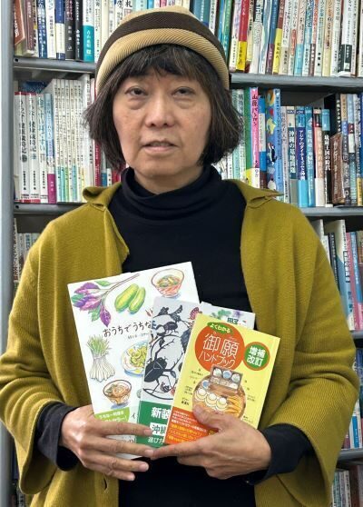1月14日、管理栄養学科荒木裕子先生の1年次ゼミ(問題発見演習Ⅱ)では、沖縄に関する本を幅広く出版されているボーダーインクの池宮紀子さんに来ていただき、沖縄関連の本を紹介していただきました。発売以来11万部以上売れているロングセラーは『よくわかる御願ハンドブック』。沖縄の旧暦行事の意味合いや御願(お供え)の仕方をイラストも混じえて分かりやすくまとめられているので、学生たちからは「家にある~」との声があがっていました。
