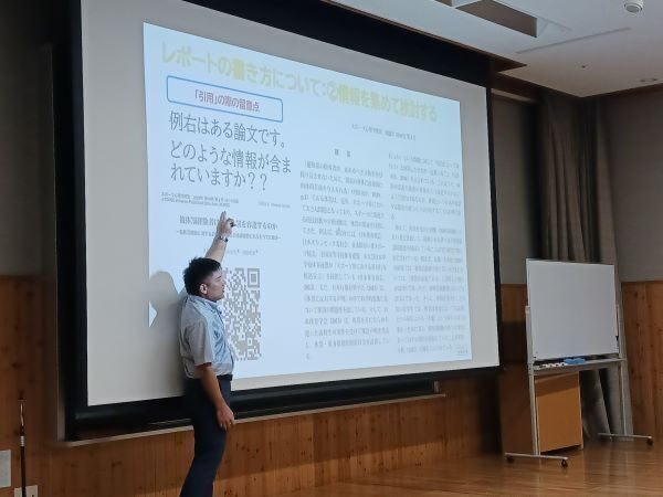 本学では体育会強化競技部の1年生を対象に、入学までの継続的な学習機会の確保することを目的として入学前課題を実施し、入学後の初年次教育を目的に「キャリア支援講座」を開講しています。また、スポーツをするうえで必要となる講座なども定期的に受講するシステムを画一しています。(下記写真は講座風景)