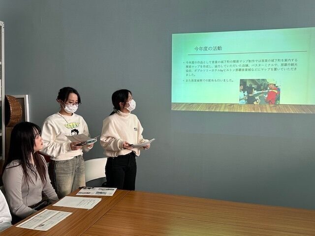 2月10日、国際コミュニケーション学科末吉綾乃先生のゼミ生が2024年度完成させた英語を活かした那覇の魅力発信事業成果物の報告を那覇市観光協会にて行いました。