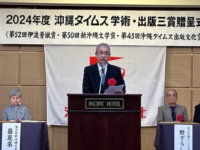 2月12日、沖縄タイムス学術・出版三賞の贈呈式が那覇市で開催され、第52回第52回伊波普猷賞を受賞した盛口満教授が授賞式に臨みました。