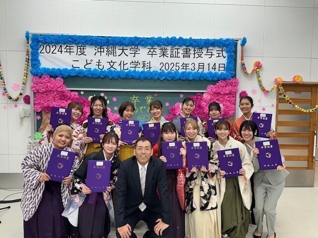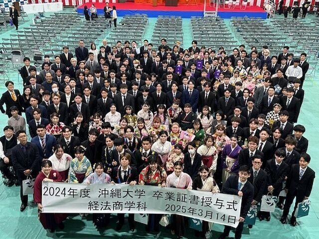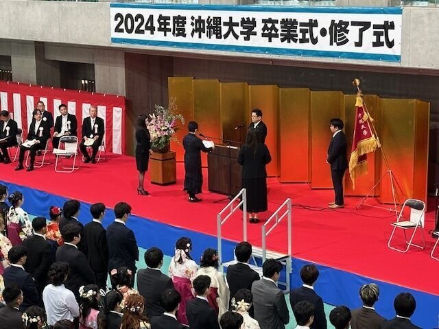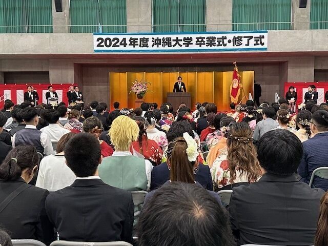 3月14日、2024年度 沖縄大学卒業式・大学院修了式を挙行し、学部生489名、大学院1名が学び舎を巣立ちました。