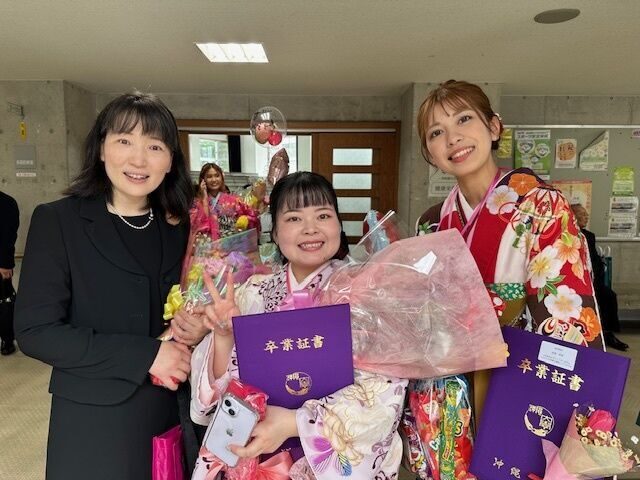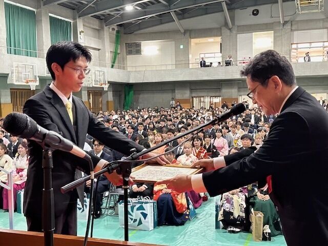 式で山代寛学長は「コロナ禍を経験した世代ですが、困難な状況下でも学びを諦めず、自らの成長を目指した皆さんの努力に心から敬意を表します。多様性を尊重し、他社と共創できる社会辞任あること、そして地域社会への貢献を忘れずに常に学び続ける姿勢を大切にしてください」と卒業生たちがエールを贈りました。