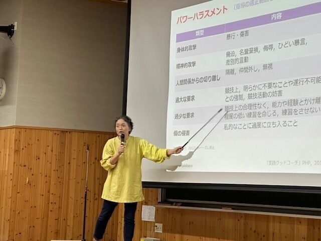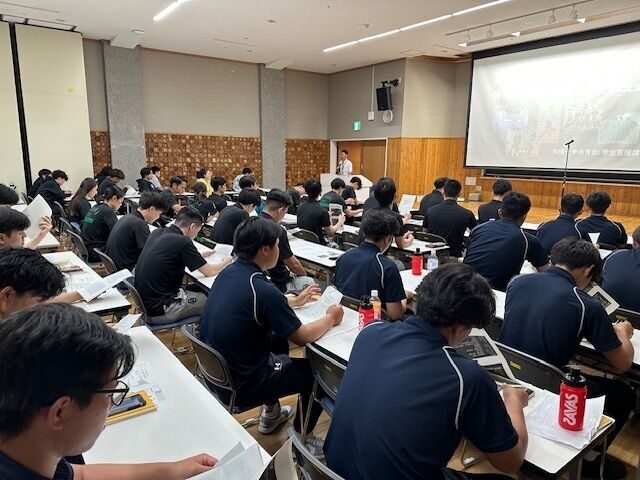 今回は本学体育会への理解と帰属意識を高め、スポーツにおけるインテグリティへの理解やデュアルキャリアの実践を目指す研修会とし実施され、体育会については大城貴之学生部長が説明を行い、福祉文化学科の石原端子先生と嘉数健悟先生が講義を担当しました。石原先生の講義では各部のキャプテンが新年度の目標を発表し、リーダーとしての個々のインテグリティ度(品格や誠実性など)について評価、チーム内でインテグリティを高めあう重要性について語られました。嘉数先生からは2024年度1年生に実施したキャリア教育について説明がなされ、取り組んだ学生たちのGPA等への成果について触れられました。