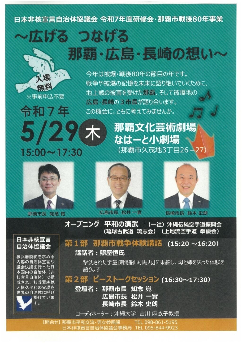 知念覚那覇市長をはじめ、広島、長崎の両市長が登壇される、ピーストークセッションとなっています。