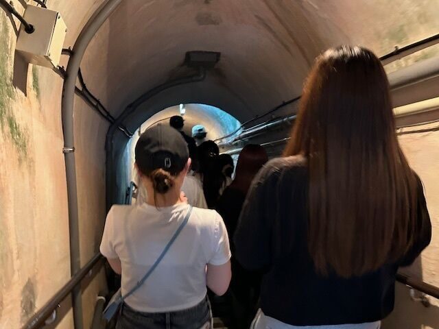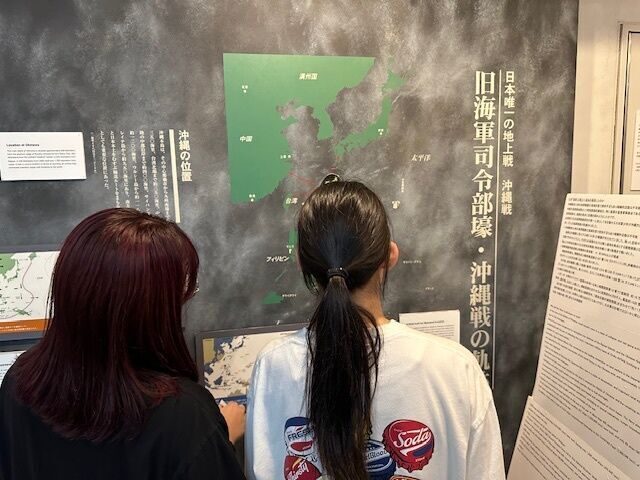比嘉さんは「慰霊の日が近くなるといろいろな平和学習をしてきましたが、壕に入ったことはなかったので、今回提案しました。今日は改めて、戦争の悲惨さを感じ、いまの平和な時代に生きていてよかったと思いました。」、平和学習教職を履修している古我知さんは、「戦後80年という節目の大事な時期にきちんと沖縄戦を学ぶ機会にしたいと考えました。初めて訪れましたが、写真などの資料を通して新しい学びが得られました。壕のなかは当時の様子が想像でき、貴重な体験になりました。多くの方に語り継ぐ、伝えることが大切だと思うので、今後も沖縄戦について学び、自分ができる平和への継承をつなげていきたいです」と話してくれました。