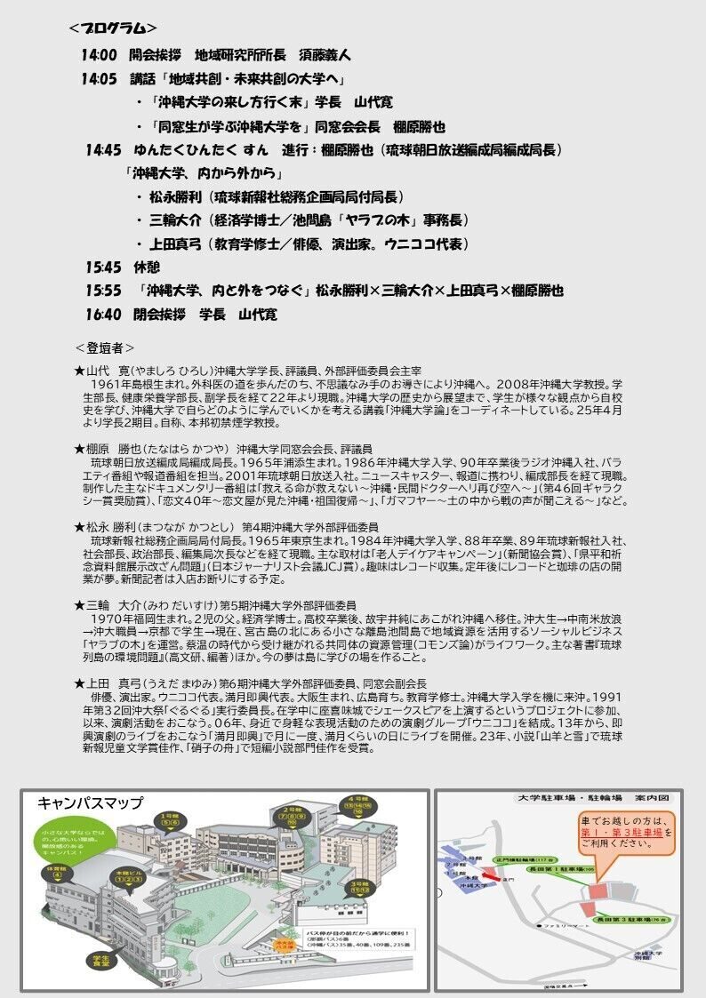 「公開 沖縄大学論 創立記念日企画 沖縄大学『発』の生涯学習を考える」を以下の日程で開催いたします。