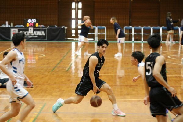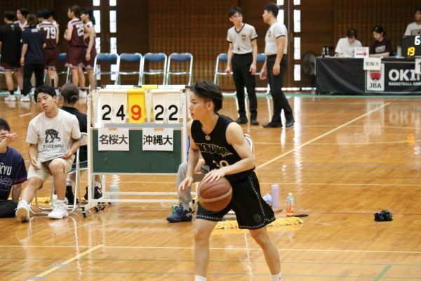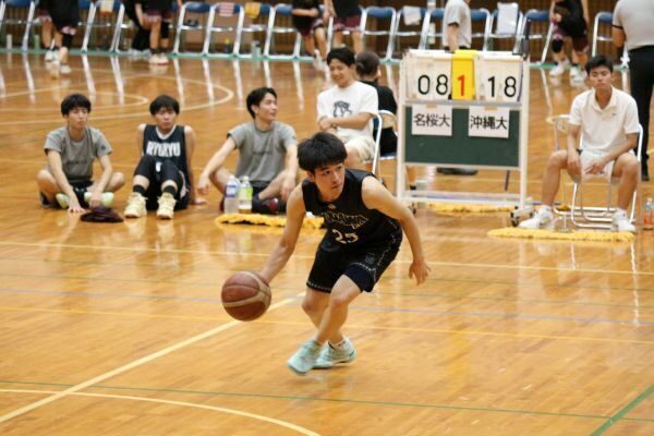 スピードと徹底した守備でゲームメークを行う男子バスケットボール部は、エースの活躍に加え一年生部員の奮闘もあり、琉球大学医学部、琉大、沖縄国際大学に20点以上の差をつけて順当に白星をあげていきます。