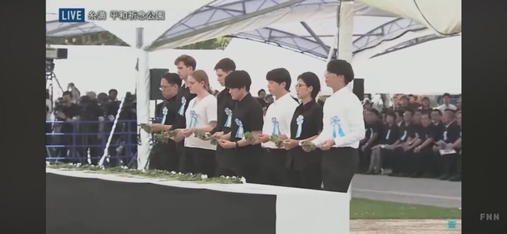6月23日に行われた、沖縄全戦没者追悼式に留学生のキコウテンさんが献花者として参列しました。