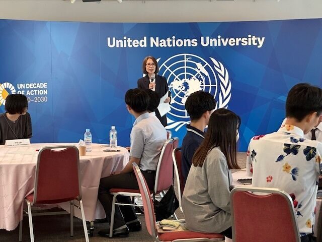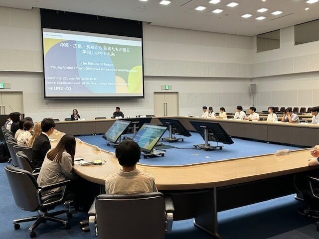 6月27日、東京にある国連大学本部で開催された対話イベント『沖縄・広島・長崎から、若者たちが語る「平和」の今と未来』に沖縄大学から6人の学生が参加し、未来の平和について語りました。