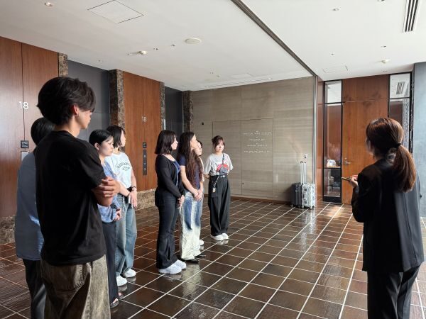 案内していただいた管理部・人材開発の知念春香さんは本学の卒業生で、ホテル独自の福利厚生や部署の仕事内容なども説明してくれました。ハイアット リージェンシー 那覇 沖縄は、“コネクト(Connect)”をコンセプトに、人と人との繋がり、地域とホテルの繋がり、を大事にしていることを伺い、沖縄の魅力を世界中から那覇を訪れるお客様に発信していることなども知ることができました。