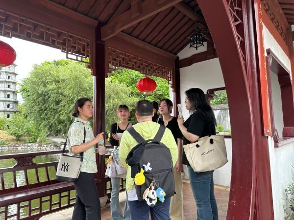 7月11日、国際コミュニケーション学科渡邉ゆきこ先生の3年次ゼミでは、那覇市にある福州園を、日本語学校(国際言語文化センター附属日本語学校(ICLC Okinawa Japanese Language School)の学生さんと一緒に見学しました。