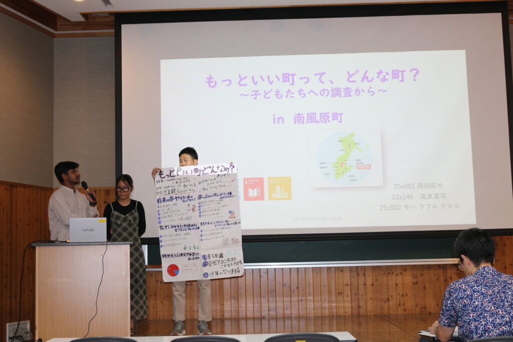 沖縄大学では、授業「国際開発とSDGs」(担当:玉城直美 非常勤講師)の一環として、7月22日(火)、県内各地で実施したフィールドワークの成果発表会を開催しました。