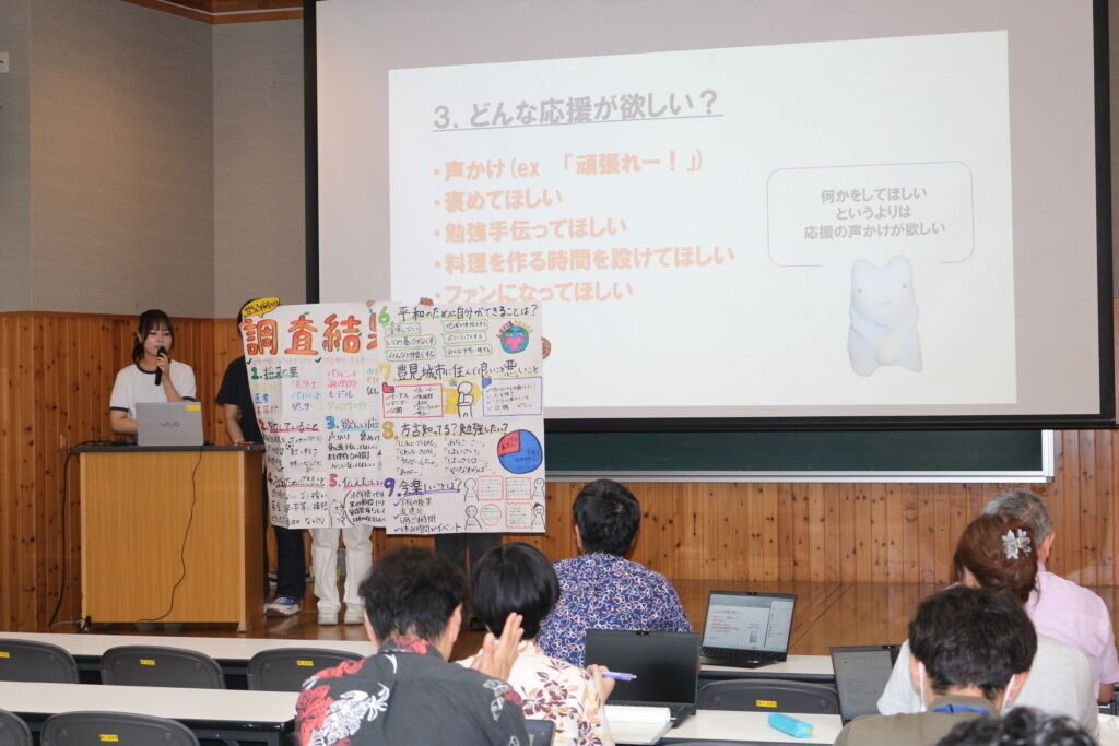 小学生へのインタビューを通じて、「夢に向かう努力」や「地域をよくするための行動」について調査。方言学習や平和についての子どもたちの声をまとめ、「地域の歴史や文化を次世代につなぐ教育の重要性」を訴えました。