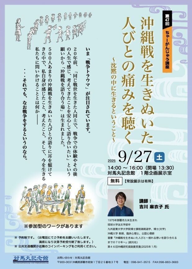 福祉文化学科教授の吉川麻衣子先生の講演が9月27日14時から対馬丸記念館で開催されます。