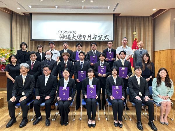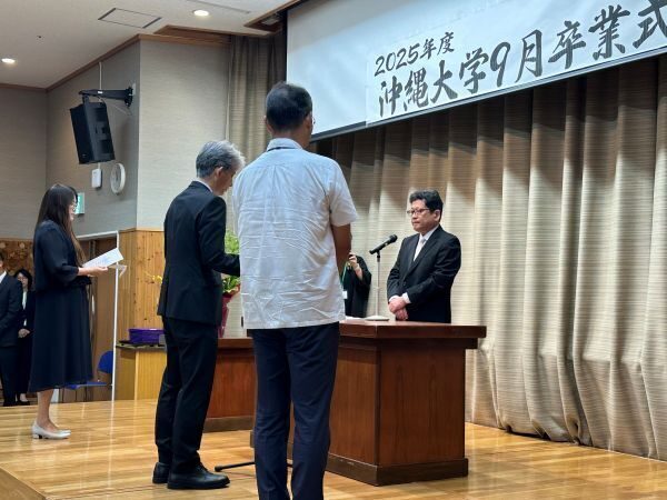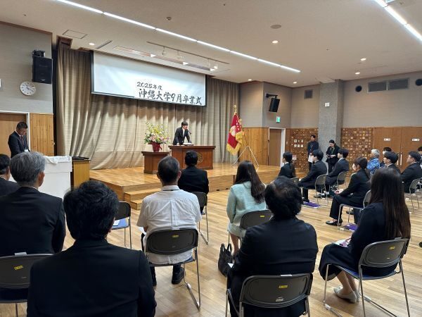 9月12日、2025年度 9月沖縄大学卒業式を挙行し、22名の学部生が学び舎を巣立ちました。