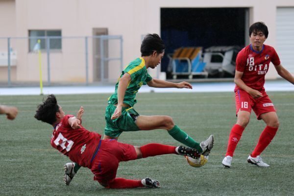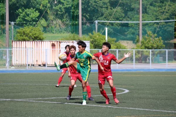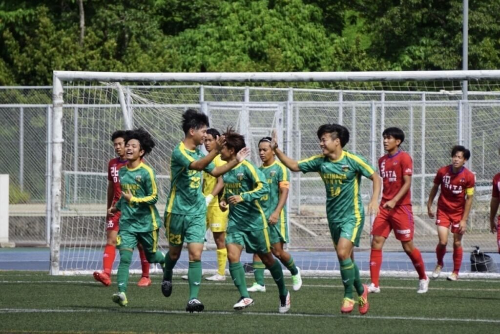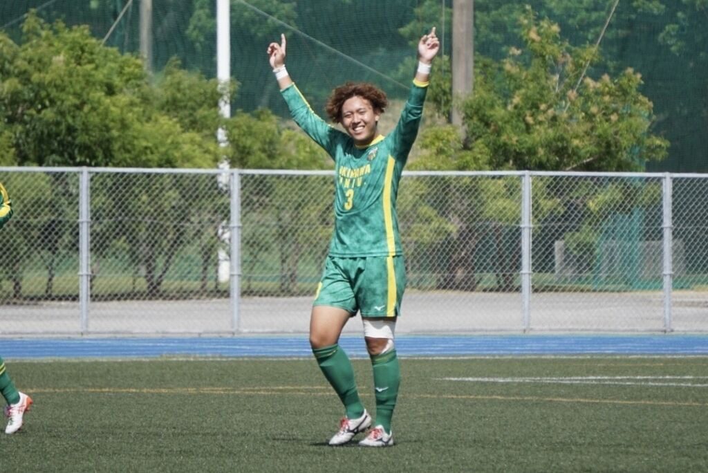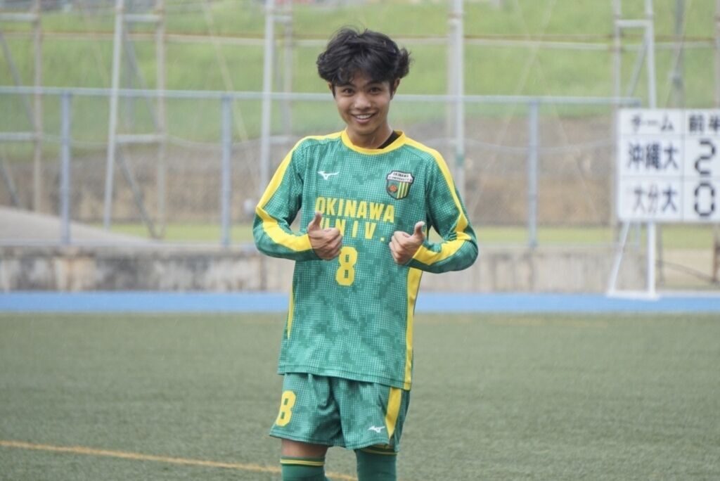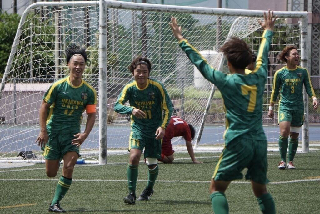 試合は序盤から沖大サッカー部が果敢に攻め、前半3分、田代有一のシュートはGKに弾かれるも、ゴールに向かったボールを相手DFがクリアできず、オウンゴールで先制。その後も粘り強い攻撃と守備で試合をコントロールし、前半19分、大城宇生のコーナーキックに斎田丈祐があわせて追加点。沖大サッカー部が2点をリードし、前半を終えます。