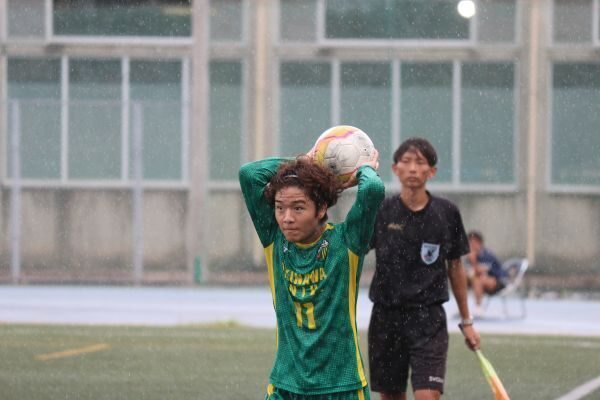 後半、相手も必死に攻め込みますが、沖大サッカー部は個々の好プレーで守りぬき、後半35分、大城侑昊のコーナーキックに阿久津 皓平がダイビングヘッドであわせて3点目。夏の練習成果を発揮したサッカー部、3対0で初戦を白星で終えました。
