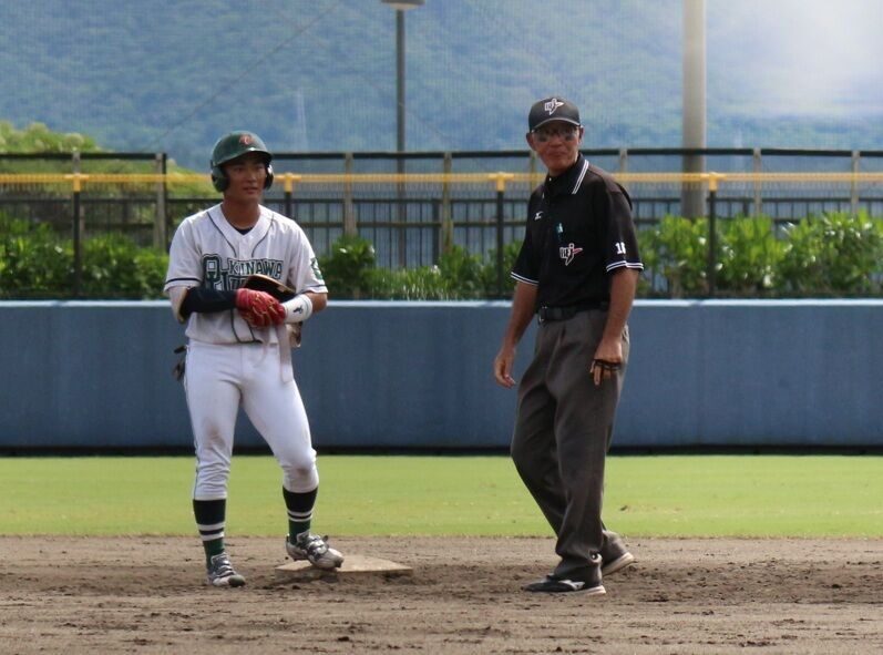 8月25日からはじまった第2回南部九州大学野球選手権大会・沖縄地区予選において、本学硬式野球部は4勝4敗で3位の結果を修めました。ベストナイン賞には4年次の知念新さんが選ばれました。知念さんは21日の沖縄国際大学戦でも先制点を入れられ追う展開のなか、4回に2ベースヒットを打ち、得点に結びつけました。