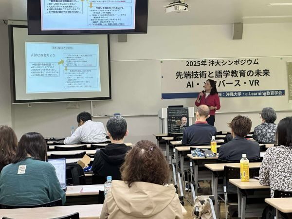 「2025年沖縄大学シンポジウム『先端技術と語学教育の未来』~AI・メタバース・VR」が11月1日、本学の共創館アネックス1階で開催され、全国各地や県内の他大学、中学・高校からも多数の先生方がご参加くださいました。