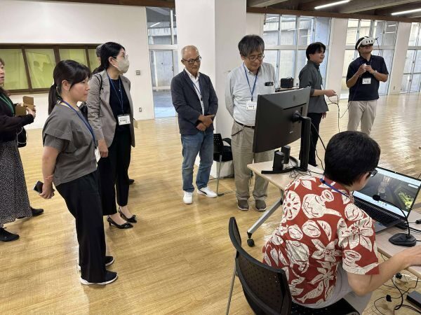 続いて午後の第2部では、本学の渡邉ゆきこ特任教授による「メタバースでAIエージェント/AIアバターに学ぶ中国語」と題した実践報告、大阪大学・大前智美准教授による「創る学び、伝える力:外国語教育×デジタル表現」と題したAIとBook Creatorを活用した授業紹介、ワークショップが開催されました。さらに沖縄国際大学・小渡悟准教授によるVR体験会も実施され、全員が簡易ゴーグルによる360度写真体験を行い、英会話学習VRソフトや渡邉特任教授作成の中国語学習用AIアバターのデモイベントも行われました。