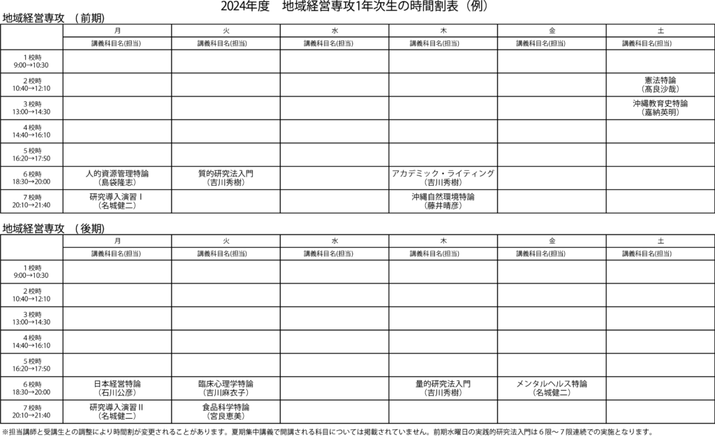 地域経営専攻の時間割例